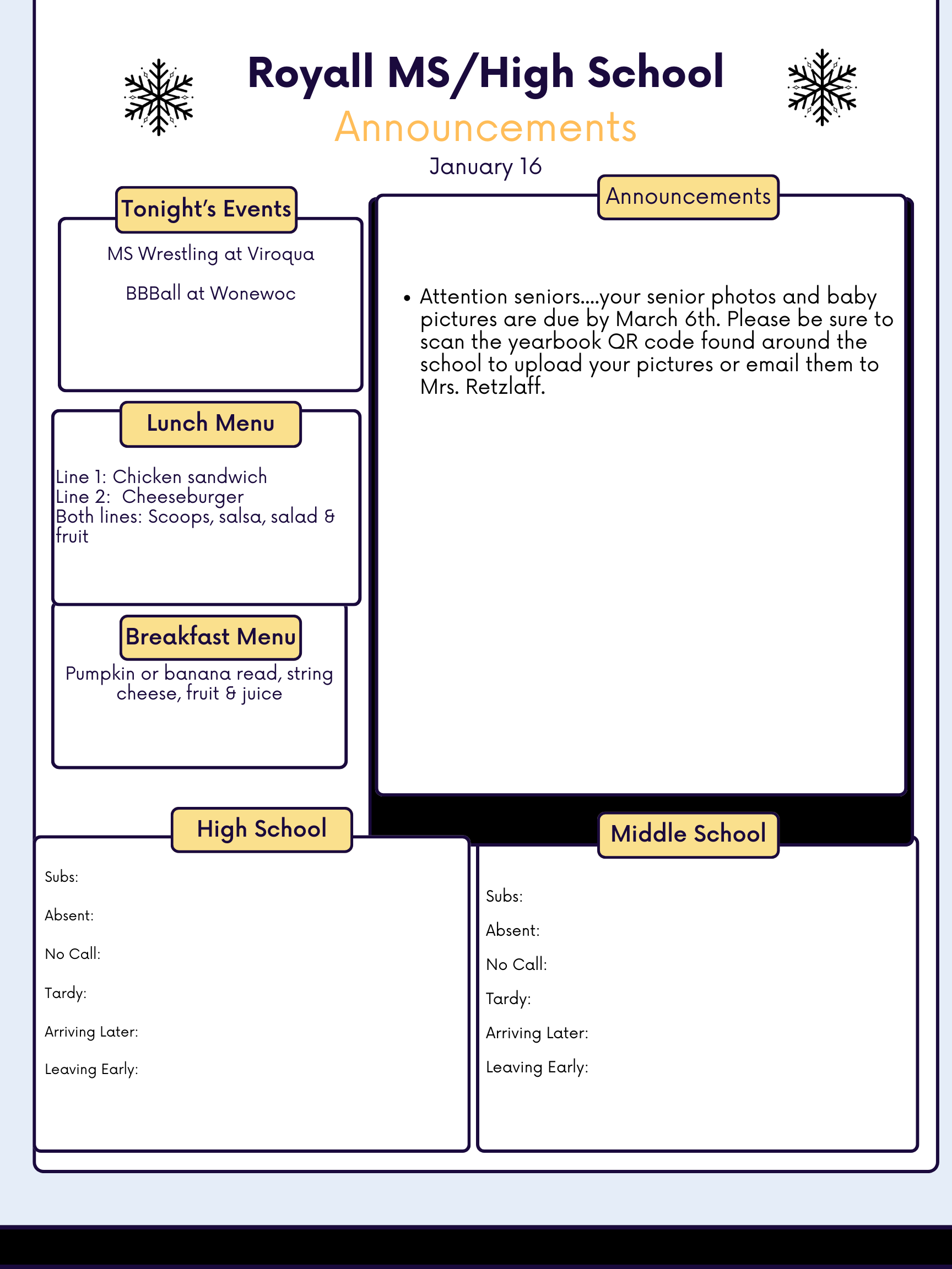 My name is Hailey Brown and I am the new Middle/High School Counselor at Royall School District. Below I have provided you with a link to a Google Site made just for the Class of 2021! This page will provide you with links, reminders, and resources specific to this year's Senior Class. I will be updating this throughout the year.